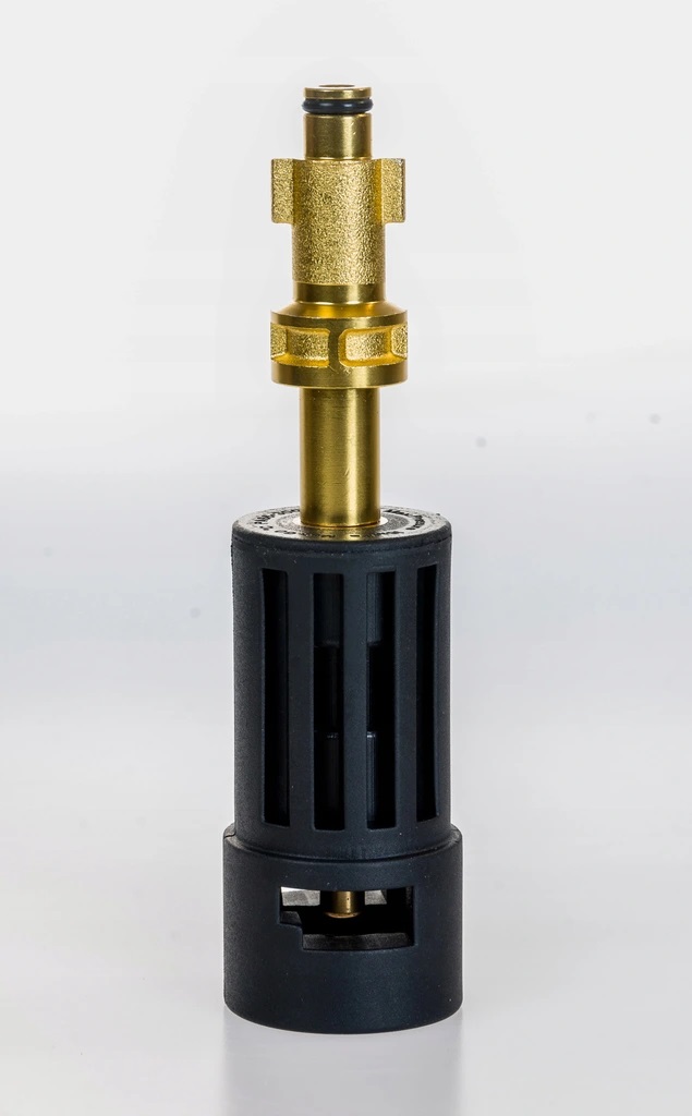 Adapter posiada standardowe przyłącza wykorzystywane w myjkach Bosch natomiast z drugiej strony gniazdo bayonet "K".