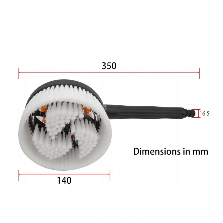 Szczotka podczas mycia obraca się pod wpływem ciśnienia, co pozwala na dokładniejsze mycie powierzchni.
