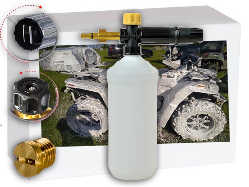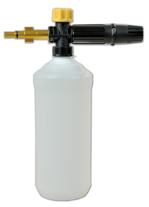 Pianownica charakteryzuje się złączem Bayonet wykorzystywanym w myjkach z serii domowej . Pianownica idealnie współpracuje ze wszelkiego rodzaju środkami czyszczącymi takimi jak: aktywna piana, szampon z woskiem i bez wosku, hydrowosk i wiele innych. Pojemność pianownicy wynosi 1 litr. Półprzeźroczysty zbiornik na chemię daje możliwość wglądu i tym samym kontrolujemy zużycie chemii. Pianownica posiada regulacje kąta strumienia wody z pianą oraz ilość podawania chemii. Wytrzymały korpus gwarantuje długotrwałe i bezawaryjne użytkowanie. W przeciwieństwie do standardowych pianownic sprzedawanych na Internecie nasza pianownica posiada dyszę ze specjalnej stali odpornej na różnego rodzaju chemię. Dodatkowo tylko nasze pianownice posiadają wewnątrz zamontowaną filtrację wyłapującą wszelkiego rodzaju niebezpieczne ciała obce zabezpieczając tym samym elementy na które nakładamy chemię. Pianownica jest w pełni odporna na agresywną chemię.