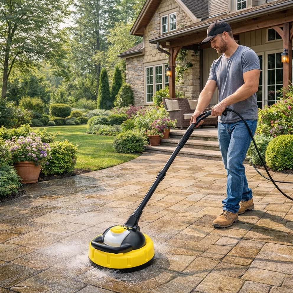 szybkie i równomierne czyszczenie kostki brukowej, tarasów i podjazdów